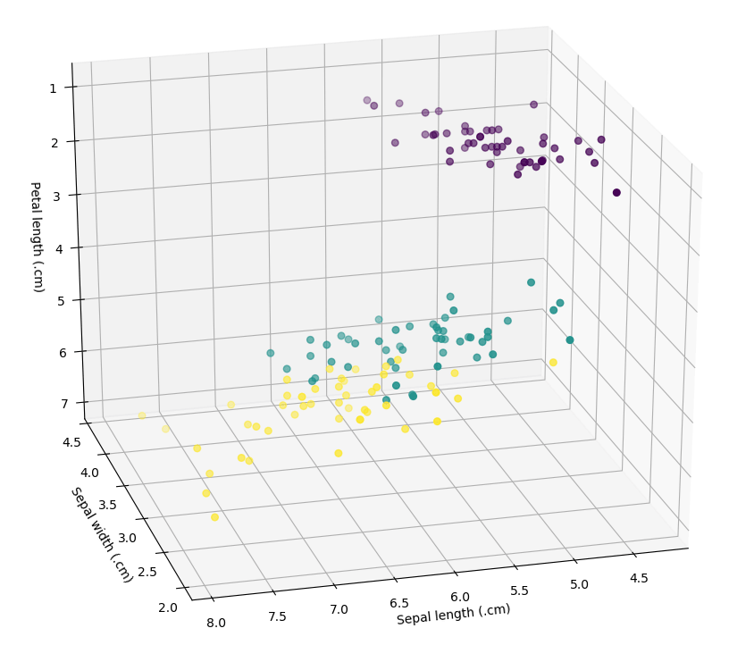 - Gán bốn tính năng và 3 loại vào hai mảng NumPy X và y tương ứng.