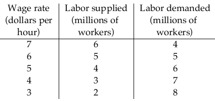 116) In the above figure, if the minimum wage is set at $8 per hour, the level of unemployment in millions of hours per week is